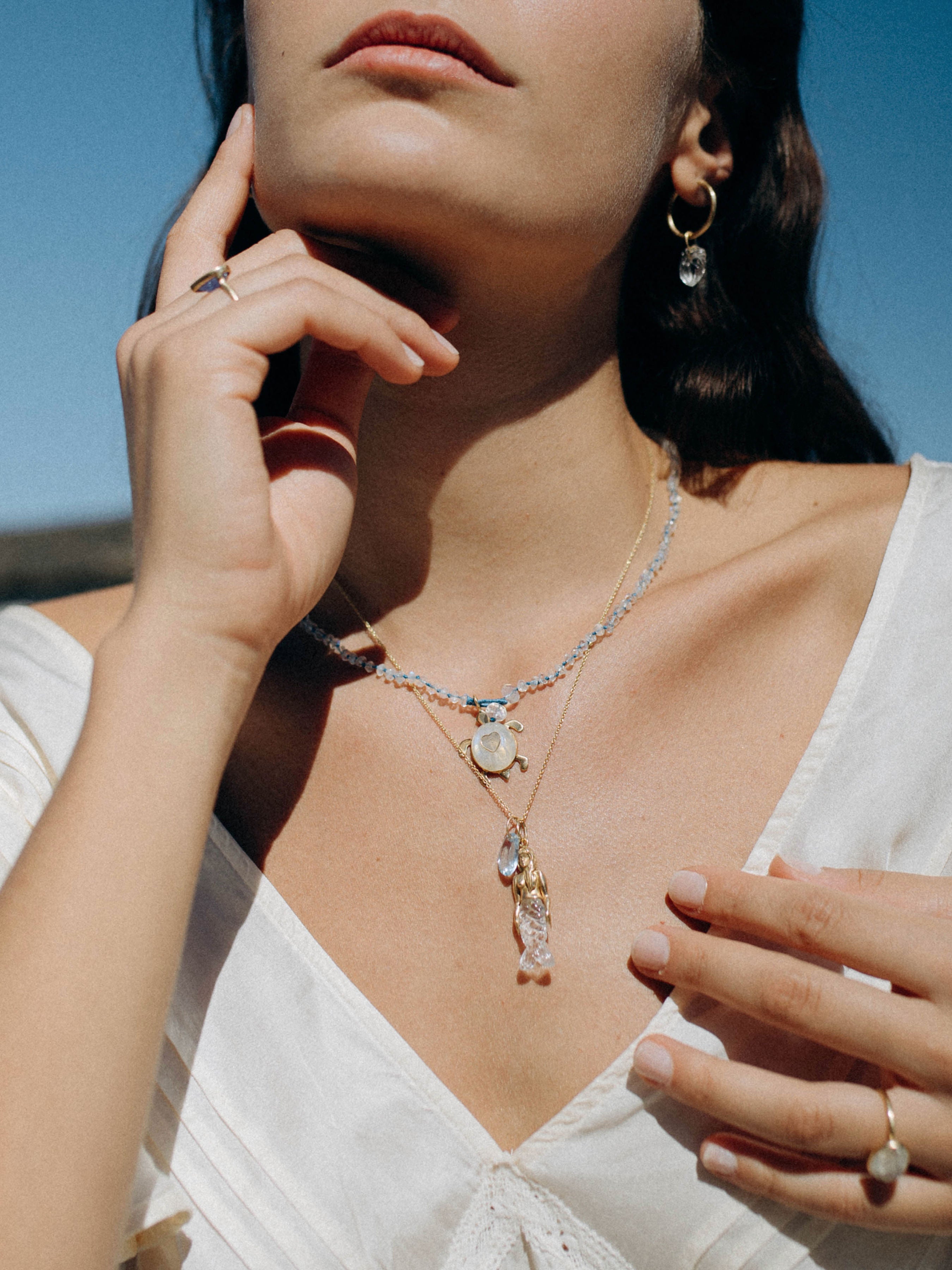 Ogni pezzo è unico, pensato per chi ama la bellezza autentica. Design pulito, materiali naturali, dettagli che durano nel tempo. Ogni creazione Mirtilla nasce da pietre naturali intagliate a mano e oro autentico, per custodire emozioni, ricordi e piccoli frammenti di viaggio.